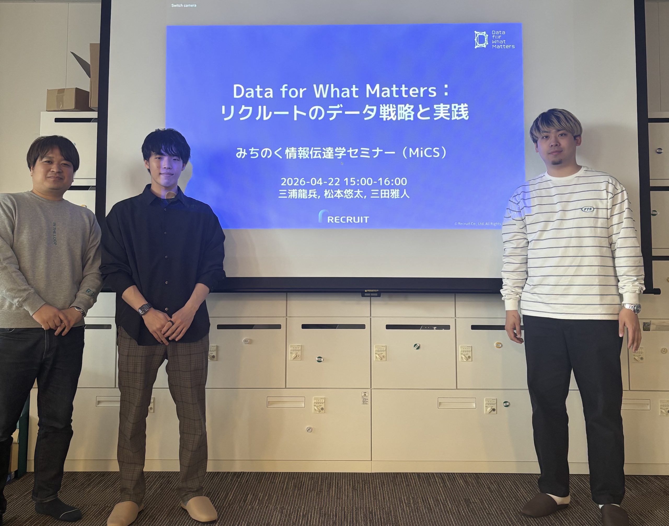 株式会社 リクルートの三浦龍兵氏、松本悠太氏、三田雅人氏に、「Data for What Matters : リクルートのデータ戦略と実践」という表題でご講演いただきました。(みちのく情報伝達学セミナー)
